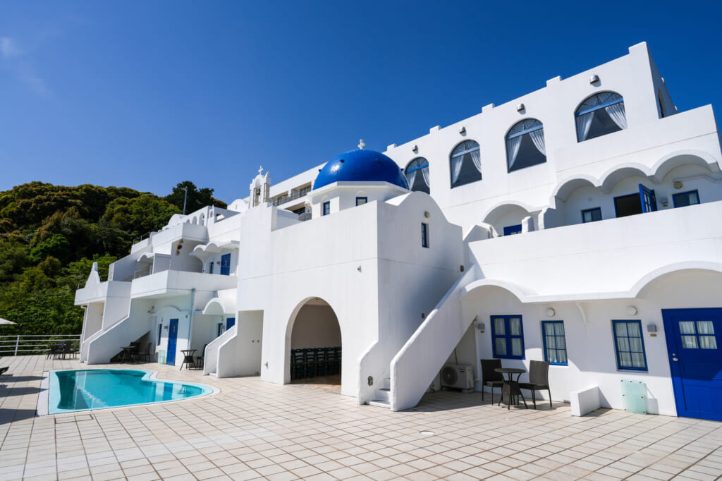 高知県の「ヴィラサントリーニ」はエーゲ海風の白壁で他にはない存在感を確立。2005年8月の開業から20年が経過していますが、今も圧倒的な個性で人気の宿泊施設です。羽田空港から高知空港の導線であり、東京から遠方でもわざわざ訪れたくなるインパクトを出せている参考事例と言えるでしょう。