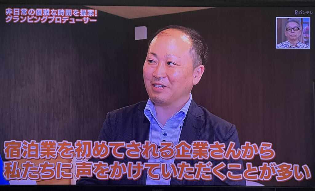 番組内では、お笑い芸人の銀シャリのお二方と一緒にリバーサイドグランピング猪名川やレジデンスヴィラ淡路マーレを紹介頂きました。